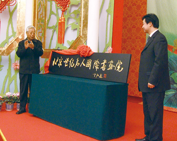 2006年1月5日,全国政协副主席、名誉院长张思卿(左)为北京世纪名人国际书画院揭牌。